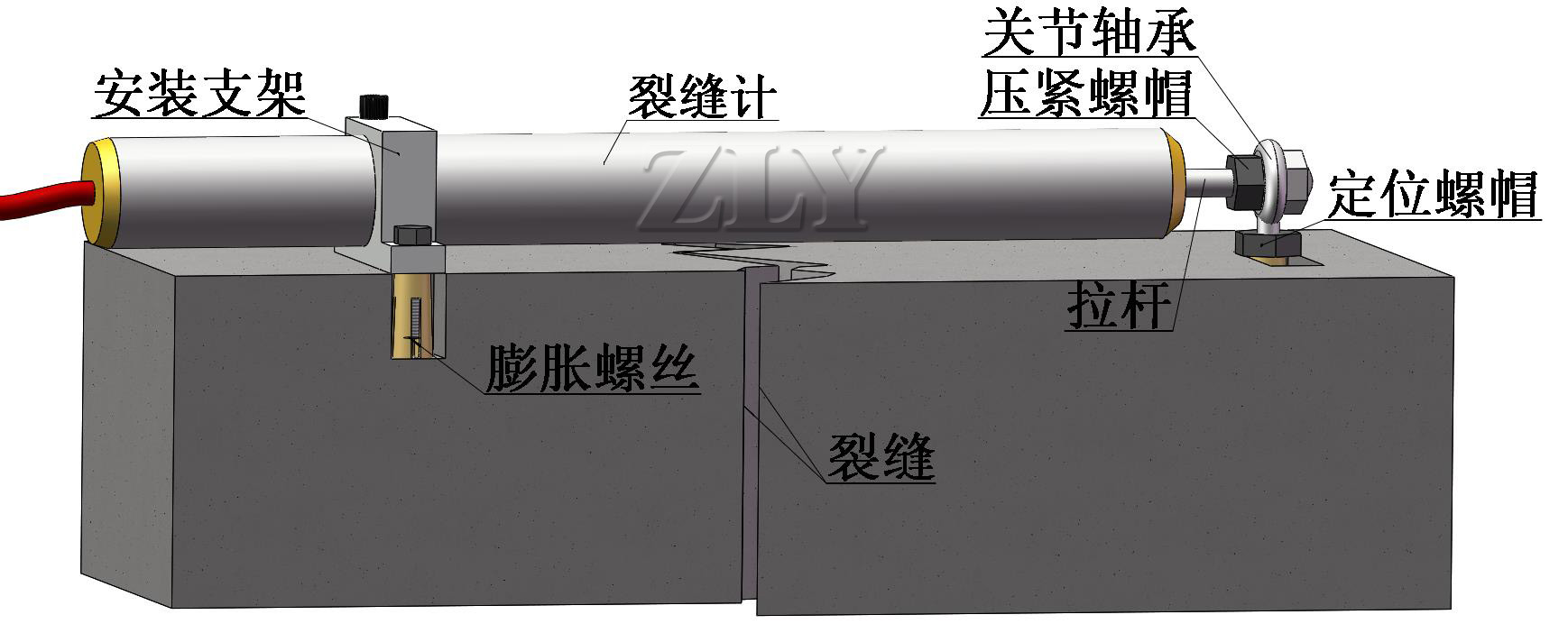 ZLY-V5000F型振弦式表面应变计是通过不同的安装附件固定到混凝土、墙体及其他建筑材料等结构物的表面,监测其应变的传感器。