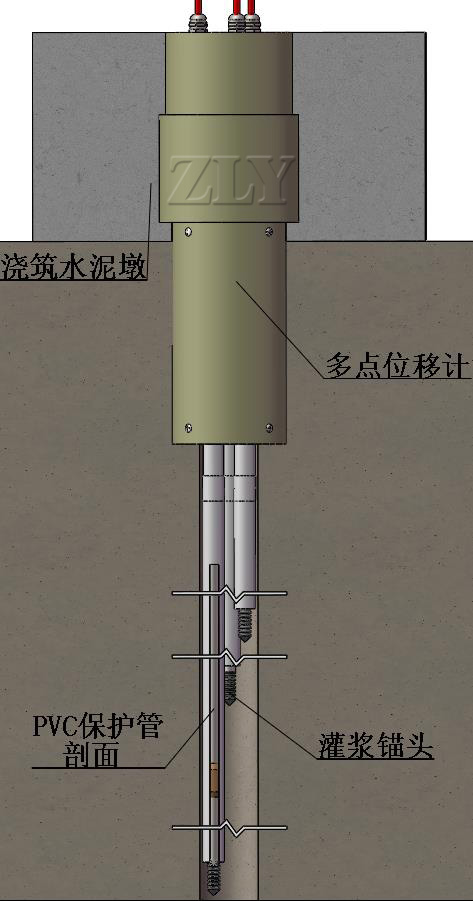 ZLY-V7000J型振弦式多点位移计(2~6只)振弦式位移传感器组装而成。