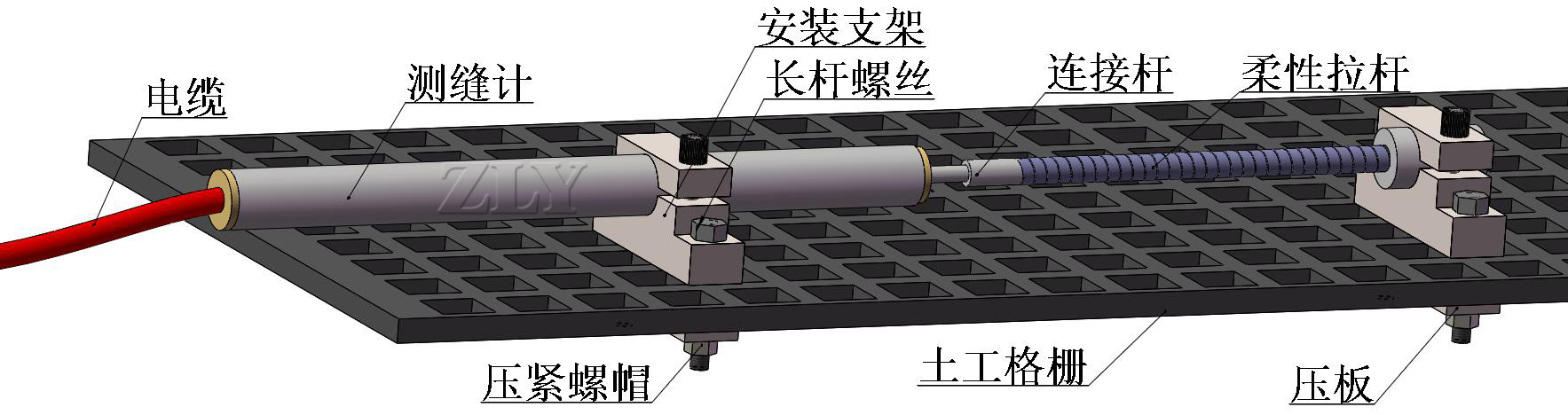 ZLY-V7000X型振弦式柔性位移计适用于位移轴线可能会发生偏移场合,如土中位移及土工格栅拉伸位移、混凝土裂缝位移等监测项目。