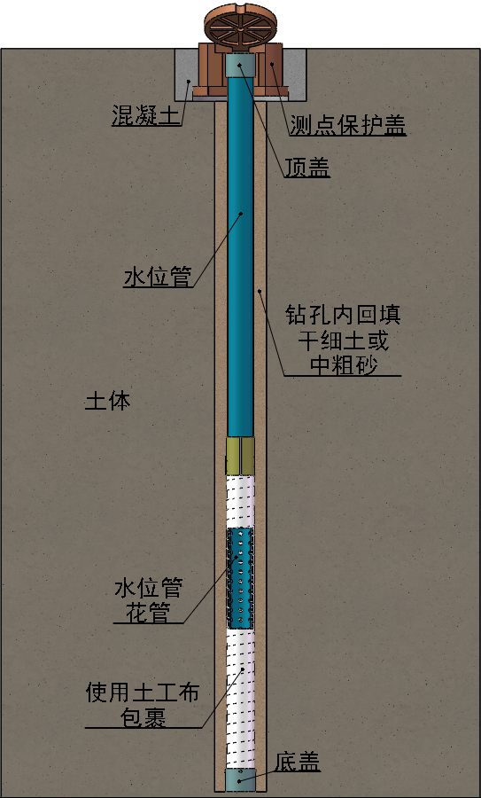 ZLY-G9600型水位管材质有三种(PVC、PEE、ABS),管上打有四排孔洞,保证有足够的透水道,管外包有土工布挡住泥砂,进行过滤,是测量水位不可缺少的导管。与其配套的有连接管(另购)和底盖(另购)。