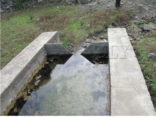 ZLY-J8100型量水堰板由不锈钢板制成,上有一个堰口,堰口旁刻有以毫米为单位的尺寸,当水经堰槽流过堰板的堰口时,根据堰口上水头的高低即可计算出流量。