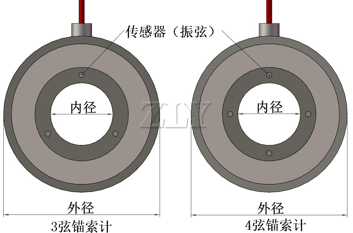 ZLY-V1800型振弦式锚索测力计采用中空结构,3~6弦测量,主要用来测量和监测各种锚杆、锚索、岩石螺栓以及大型应力钢筋混凝土结构(桥梁、边坡和大坝等)中的预应力的张拉与损失等情况。