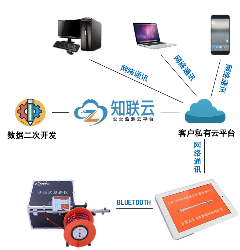 ZLY-U6000EB/FB型知联云蓝牙活动式测斜仪是一种新型的以蓝牙传输方式的活动式测斜仪,该测斜仪是将采集的数据经处理后通过蓝牙将数据传送至平板电脑,然后可进行相应的数据查看,报表显示,也可将数据通过网络传送至云平台;用户通过账号登录云平台后能及时查看已经上传的数据,同时可对数据进行整理、分析和管理。也可通过手机微信小程序查看本账号内的报表等信息。